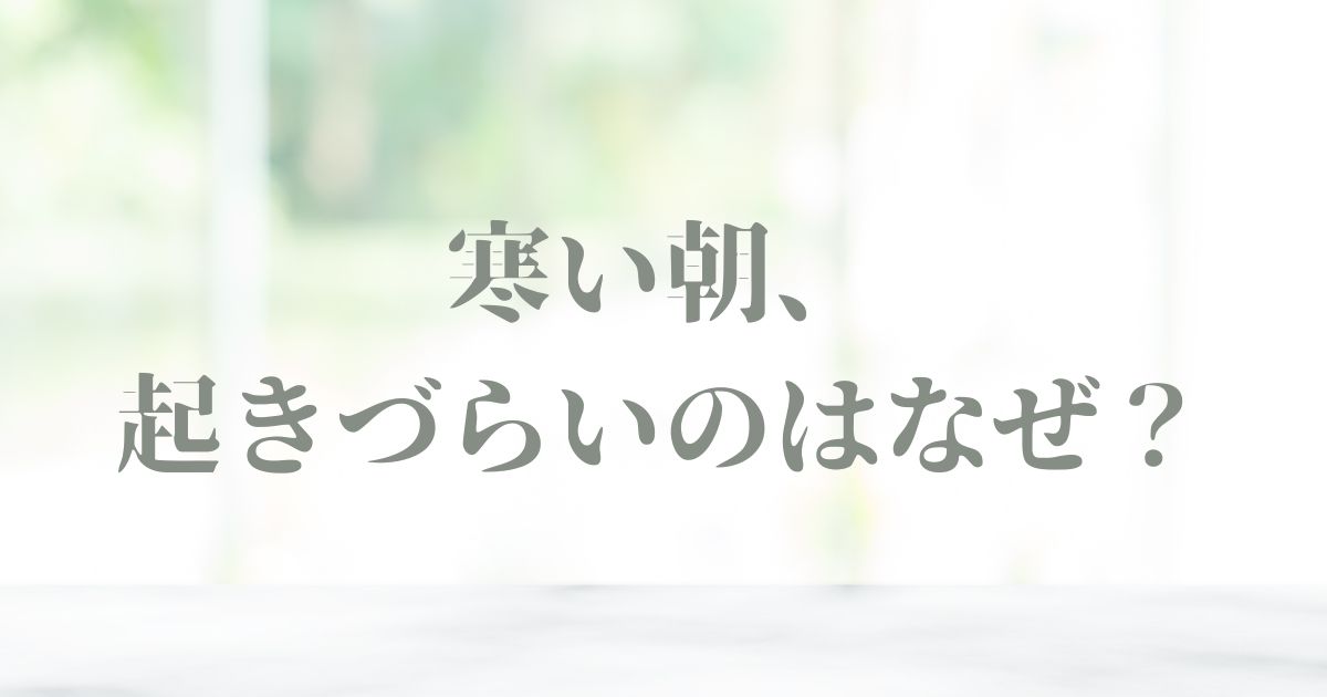 寒くなると、いつも以上に朝起きるのがつらく感じませんか?